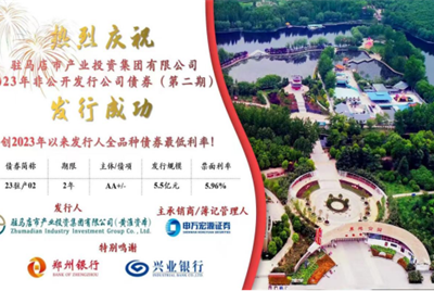 2023年5.5億元私募債(第二期)成功發(fā)行面對復雜嚴峻的經(jīng)濟形勢,駐馬店市產(chǎn)業(yè)投資集團有限公司(以下簡稱“市產(chǎn)業(yè)集團”)緊緊圍繞市委、市政府戰(zhàn)略部署,5月30日,市產(chǎn)業(yè)集團2023年非公開發(fā)行公司債券(第二期)成功發(fā)行。此次債券發(fā)行規(guī)模5.5億元,期限2年,票面利率5.96%,創(chuàng)市產(chǎn)業(yè)集團2023年以來全品種債券…